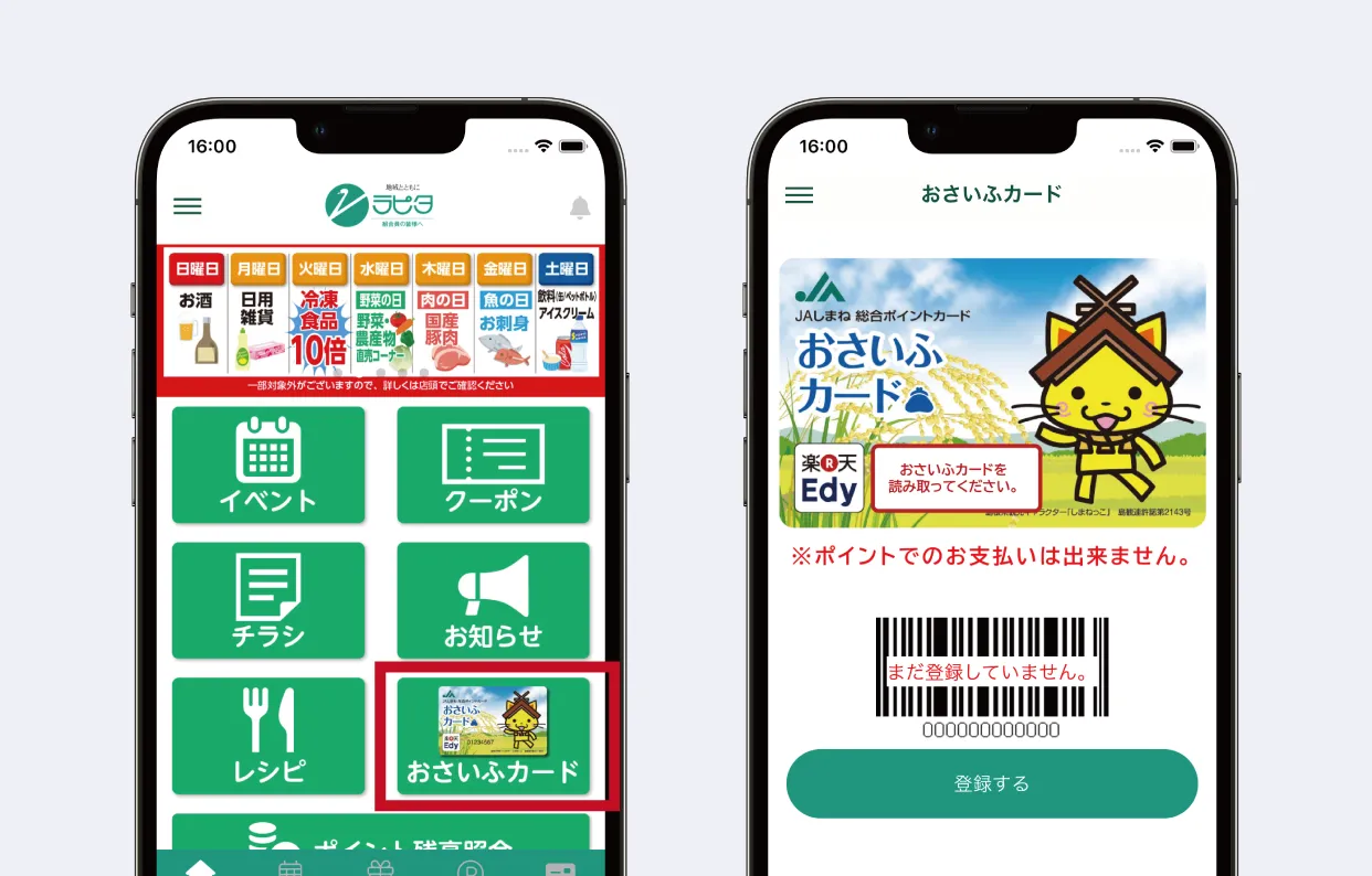 ポイントカードをアプリ化することで、物理管理の負担を軽減し、利便性の向上に貢献。