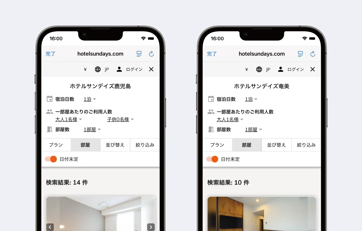 ホームタブ機能を活用し、複数のホーム画面を表示可能に。ホテルごとに予約導線や情報発信を個別に設け、利便性と訴求力を向上。