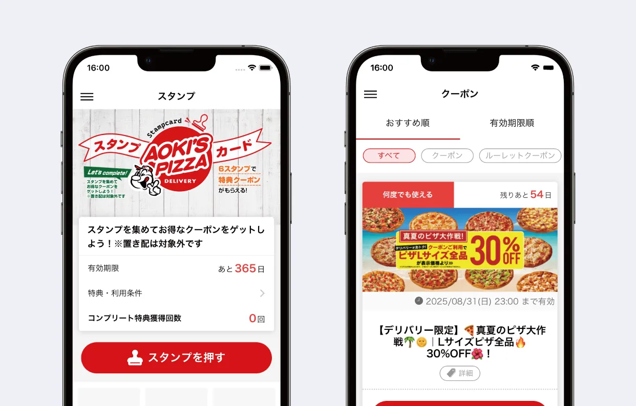 デジタルクーポンとスタンプカードを導入し、再来店促進に貢献。スタンプ取得数やクーポン利用状況を分析し、次の施策へ活用。
