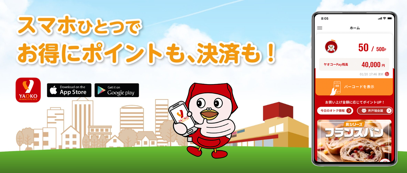 関東地方でスーパー事業を展開している「ヤオコー」では、「ヤオコーアプリ」を提供しています。