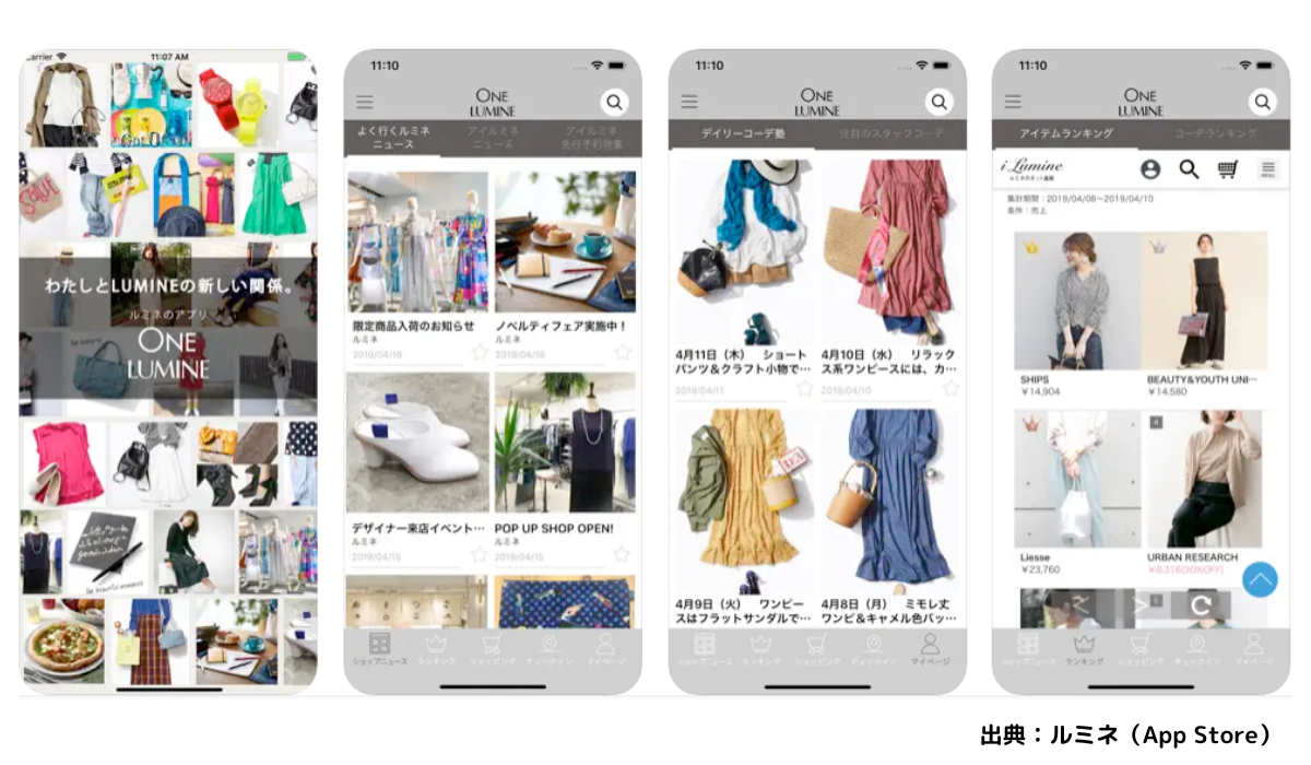 ファッションビルのルミネでは、「ONE LUMINE」アプリを提供しています。